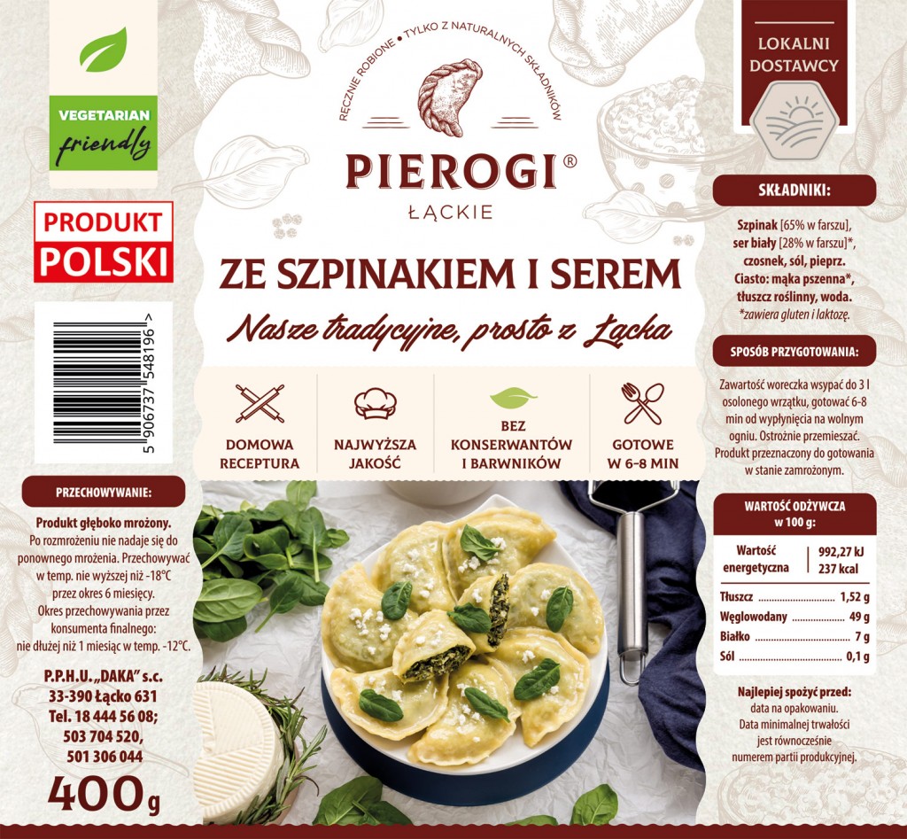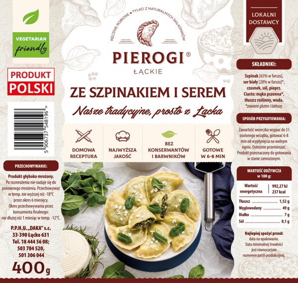 Szpinak bywa troszkę niedoceniany, ale odpowiednie towarzystwo innych dodatków wydobywa pełnię smaku z tego niezwykłego i bardzo zdrowego warzywa. Szpinak i czosnek to idealne połączenie, więc czosnek musiał się znaleźć w tym farszu. Biały swojski ser natomiast, dodaje smacznej podbudowy i pożywności, a odrobina soli i pieprzu dopełnia całości. Pierogi Łąckie ze szpinakiem polecamy nie tylko wegetarianom. To treściwe i pełne witamin danie.